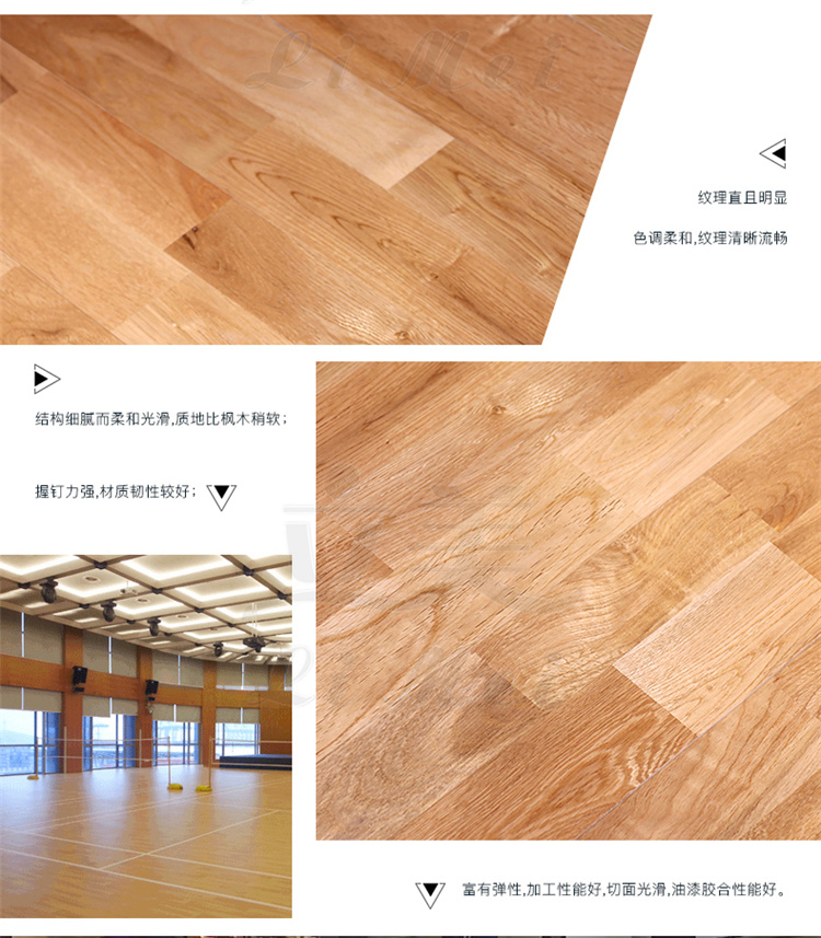 此种类型地板不但外表美观,且安装后的场地具有运动、保护、技术三大基本功能,在功能性方面普通家装木地板是不能比拟的。首先,其结构比较复杂,层次比较多,对材料的物理和力学性能要求更高。其次,选材严格,一般以枫木、柞木等长纤维木种面板为主。
